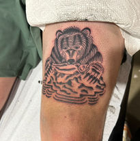 Looking for bold and classic traditional tattoos without the commute to Vancouver? Look no further! Our apprentice Emily has been at Ink and Honey since May of 2023 and started tattooing in the summer of the same year. Emily's work reflects a deep love of pop culture, nostalgia and old-school tattooing. Check out Emily’s Instagram highlights for available flash, stop by the shop and flip through her hefty catalogues of designs, or browse the walls around her station. DM on instagram, or e-mail to book flash and custom work!