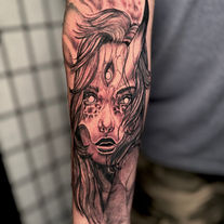 Michaela is one of Ink & Honey's newest artists! Originally from the East Coast, she moved here to experience West Coast living, the art scene, and beautiful landscapes. She has been tattooing for almost three years and primarily does blackwork tattoos. She is really wanting to lean into colour designs as well. Her favourite styles are; medieval, cartoons, line work, blackwork, and ignorant.
